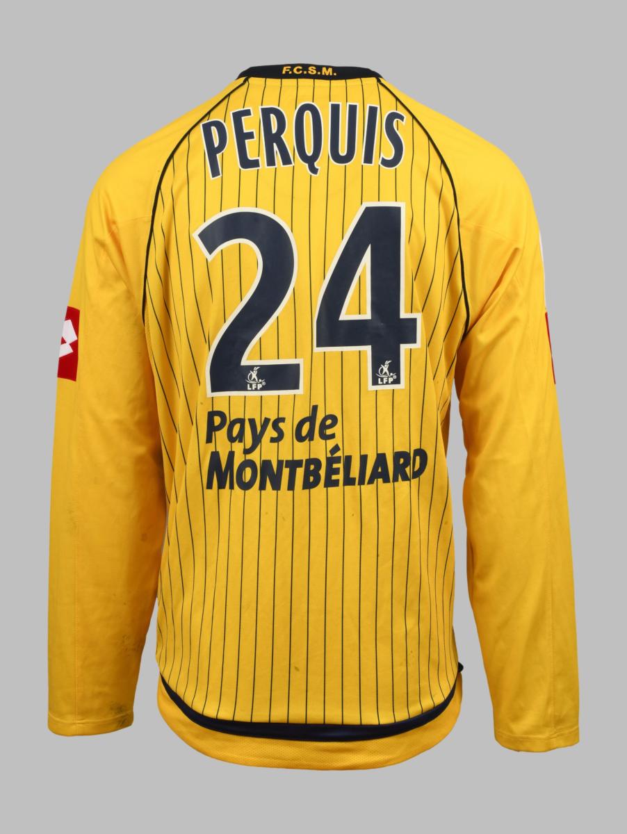 Défenseur. Maillot N°24 du Football Club Sochaux-Montbéliard porté lors de la saison 2009-2010 du Championnat de France de Ligue 1. Le joueur participe à 34 rencontres. Match à déterminer. Marque Lotto. Fabriqué en Italie. Taille XXL. Maillot porté et non lavé avec traces de match (match worn shirt, unwashed).