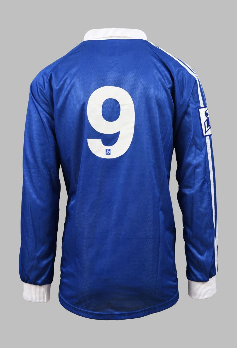 Attaquant. Maillot N°9 des Chamois Niortais préparé pour le 16ème de Finale de Coupe de la Ligue contre l’AJ Auxerre le 9 janvier 1999. Victoire des Auxerrois 1-0. Le joueur est remplaçant et entre à la 63ème minute. Marque Adidas. Fabriqué au Royaume-Uni. Taille XL. Maillot préparé (match issued shirt).