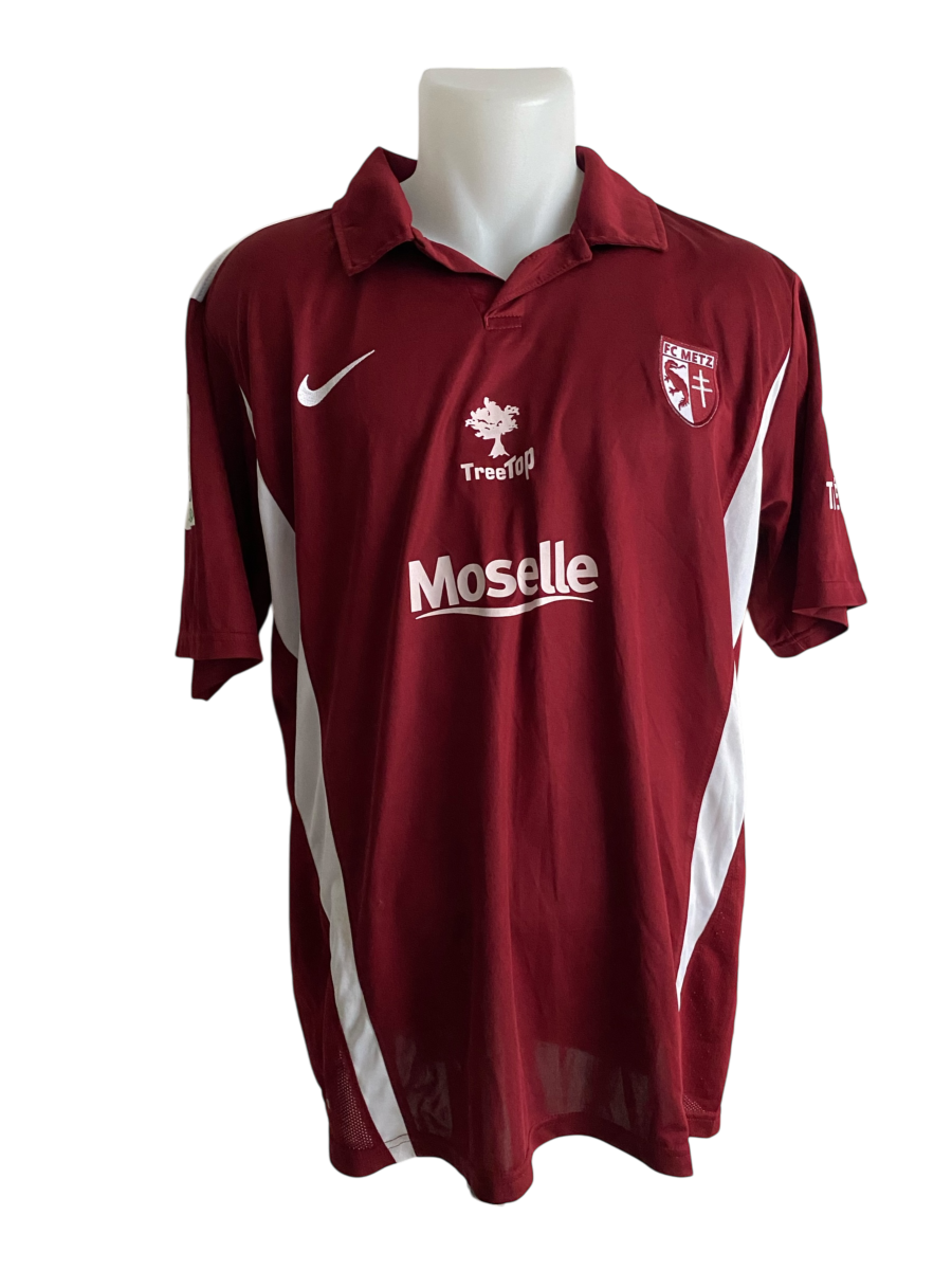 Maillot N°6 du FC Metz préparé pour la saison 2011-2012 du championnat de France de Ligue 2. Le joueur joue 33 matchs. Marque Nike. Taille L.