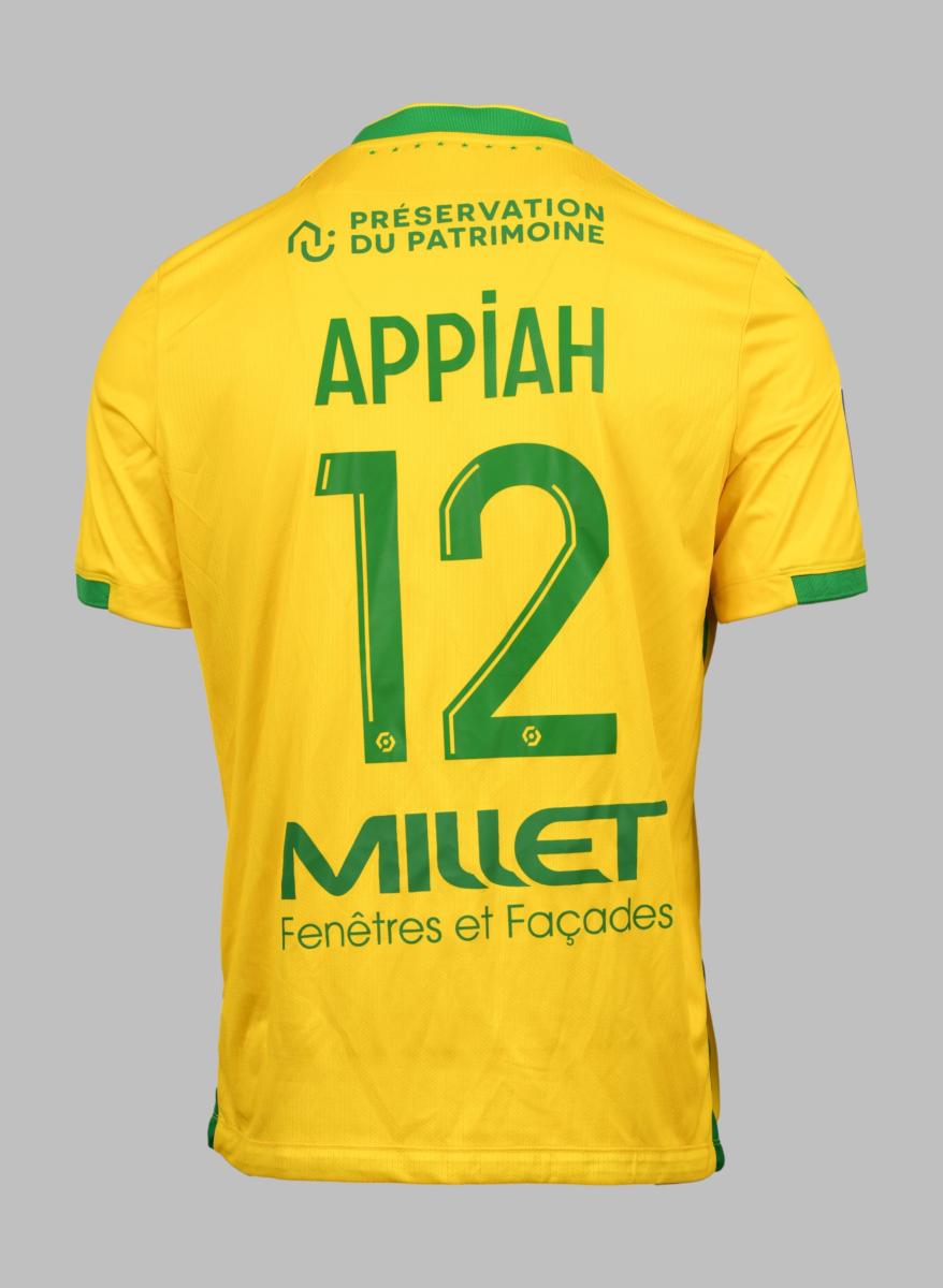 Défenseur. Maillot N°12 du Football Club de Nantes porté lors de la saison 2021-2022 du Championnat de France de Ligue 1. Le joueur participe à 32 rencontres. Match à déterminer. Marque Macron. Modèle MPerformance System. Fabriqué en Chine. Taille M. Maillot porté (match worn shirt).