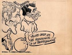 | Dessin original de GULLY ET IBRAHIM (LA BERRICHONNE DE CHATEAUROUX) signé Pierre Rollot dit SIRO (1914-2005) à l'encre sur papier calque. Format 16x21 cm. Bon état.