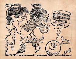 | Dessin original de J.C PERREAU ET IBRAHIM (LA BERRICHONNE DE CHATEAUROUX) signé Pierre Rollot dit SIRO (1914-2005) à l'encre sur papier calque. Format 16x21 cm. Bon état.