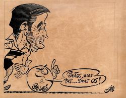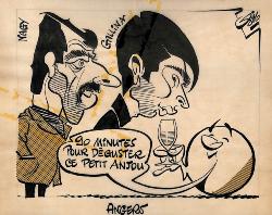| Dessin original de BENTOUMI ET GAIDOZ (AS CANNES) signé Pierre Rollot dit SIRO (1914-2005) à l'encre sur papier calque. Format 15x21 cm. Bon état.