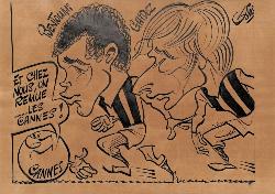 | Dessin original de NAGY ET GALLINA (SCO ANGERS) signé Pierre Rollot dit SIRO (1914-2005) à l'encre sur papier calque. Format 16x21 cm. Bon état.