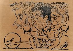 Dessin original de BRULEZ, EDWIGE ET DAMJANOVIC (SCO ANGERS) signé Pierre Rollot dit SIRO (1914-2005) à l'encre sur papier calque. Format 15x21 cm. Bon état. |