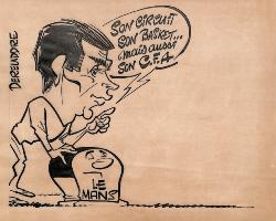 | Dessin original de René DEREUDDRE (LE MANS FC) signé Pierre Rollot dit SIRO (1914-2005) à l'encre sur papier calque. Format 17x21 cm. Bon état.