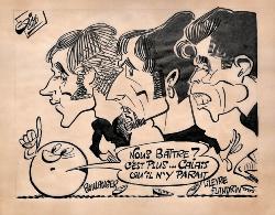 Dessin original de BOULANGER, LILEYRE ET FLANDRIN (RUFC CALAIS) signé Pierre Rollot dit SIRO (1914-2005) à l'encre sur papier calque. Format 16x21 cm. Bon état.