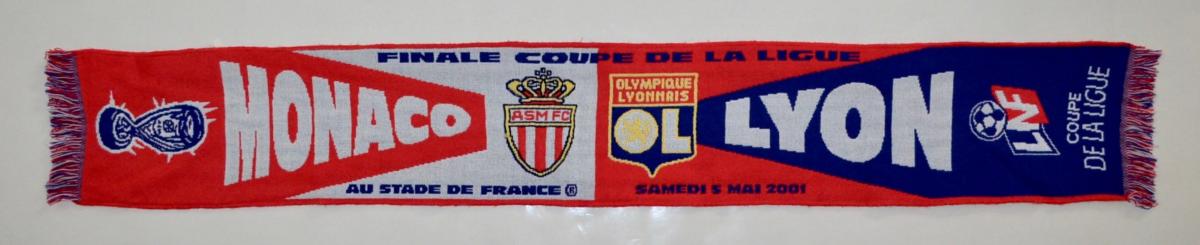 Écharpe Football de la finale Coupe de la Ligue 2001 opposant l'AS Monaco à l'Olympique Lyonnais. Bon état.