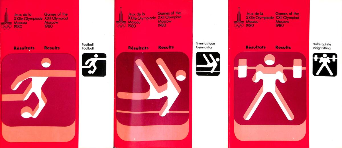 ENSEMBLE DE 21 FASCICULES DES RÉSULTATS OFFICIELS DES JEUX OLYMPIQUES DE MOSCOU 1980. Bon état d'usage.