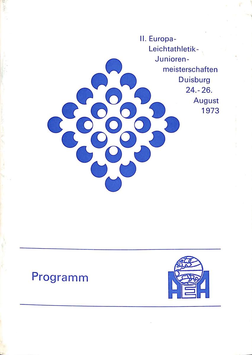 ENSEMBLE DE 3 PROGRAMMES OFFICIELS CHAMPIONNAT D'EUROPE JUNIOR ATHLÉTISME DU 23 AU 26 AOÛT 1973 EN ALLEMAND. État d'usage.