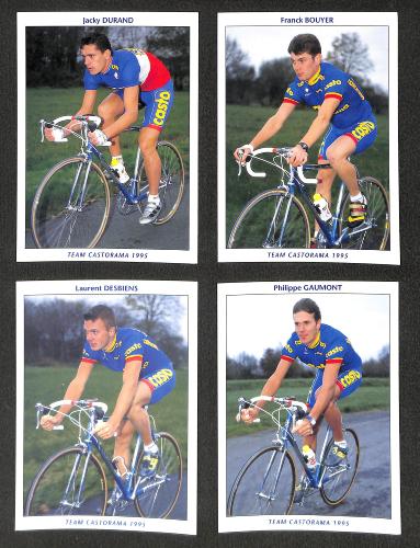 ENSEMBLE DE 38 CARTES PHOTO AVEC 16 COUREURS DIFFÉRENTS + DOUBLES DE L'ÉQUIPE CASTORAMA 1995. BON ÉTAT.