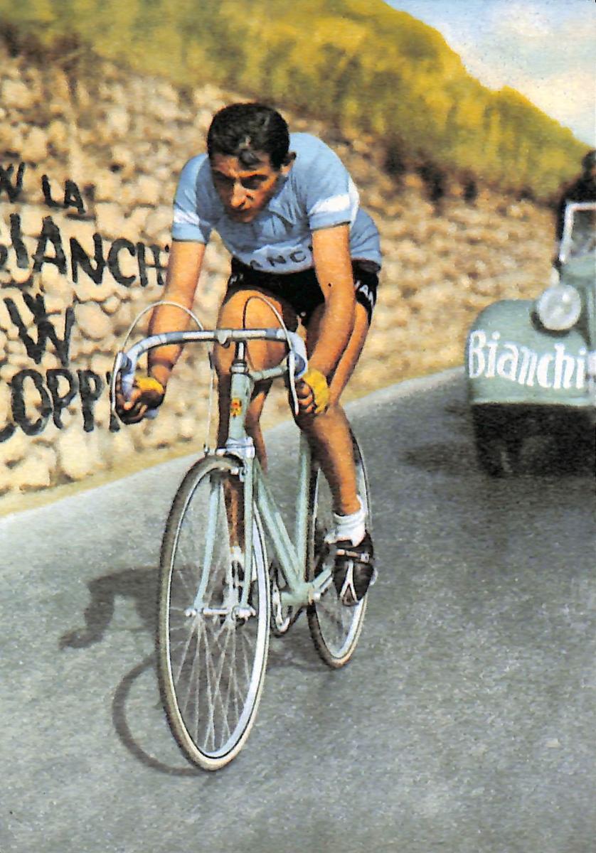 Cartes postale de COPPI, GOTTI, MESSINA, PFENNINGER, SPEICHER, PLATTNER, DEKKER. Éditions "Coups de Pédales". Format 10,5x15 cm chaque. État neuf.