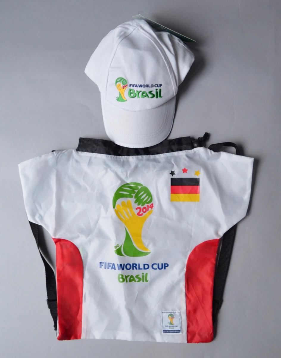 Lot de 2 produits officiels de la COUPE DU MONDE FOOTBALL BRÉSIL 2014, Composé d'un sac et d'une casquette. Ensemble neuf avec étiquettes.
