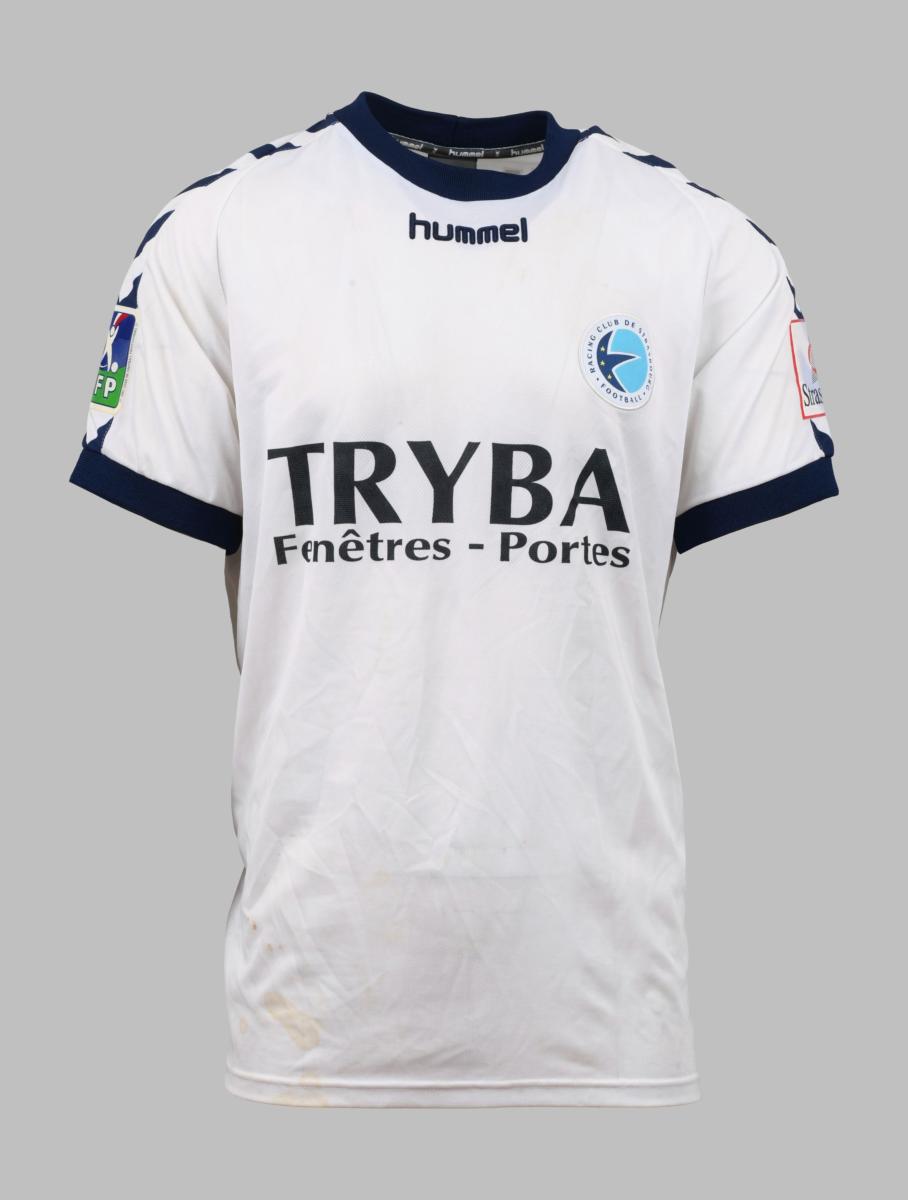 Attaquant. Maillot N°17 du Racing Club de Strasbourg porté lors de la saison 2003-2004 du Championnat de France de Ligue 1. Le joueur participe à 21 rencontres. Match à déterminer. Marque Hummel. Taille XL. Maillot porté (match worn shirt).