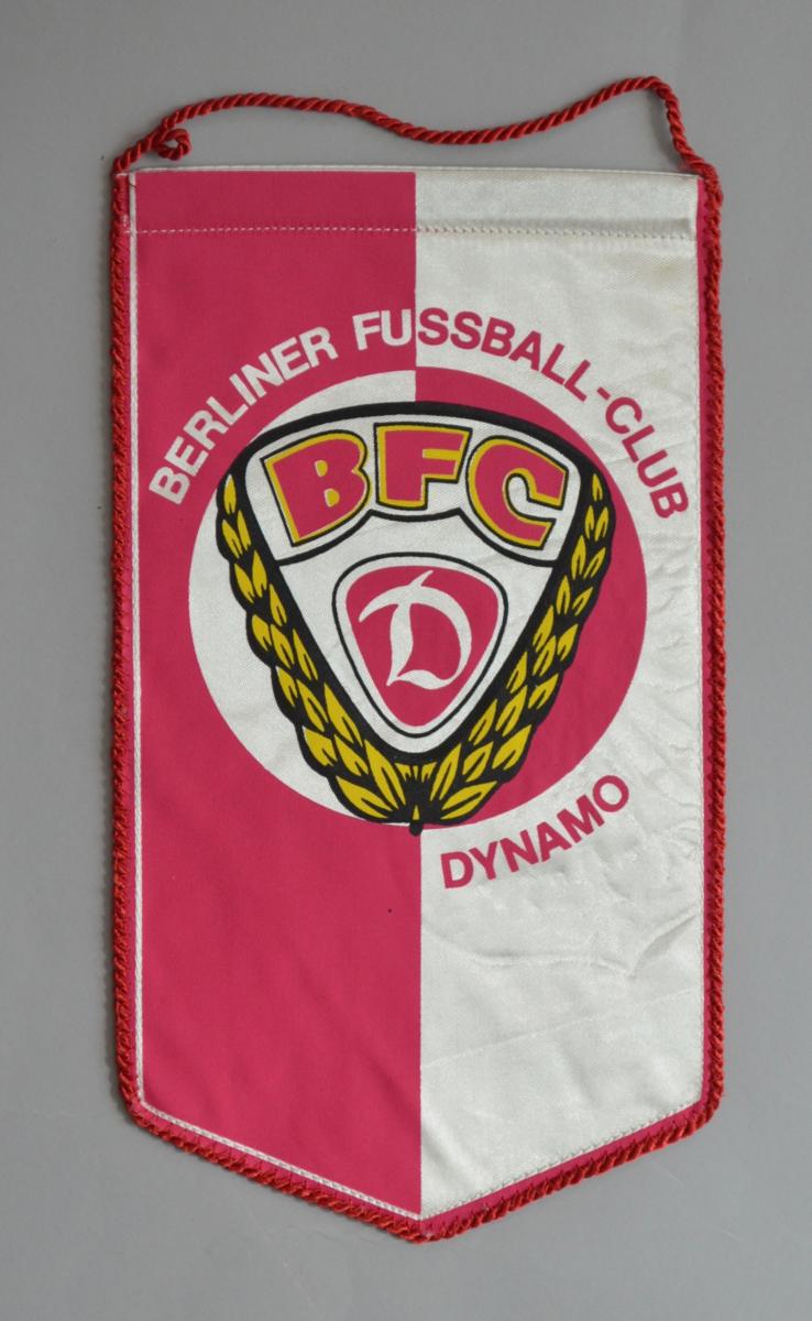 Fanion du DYNAMO BERLIN. Dimensions 24,5 x 14 cm. État d'usage.