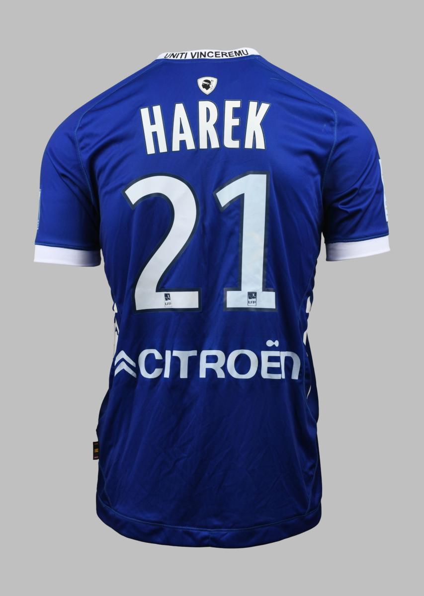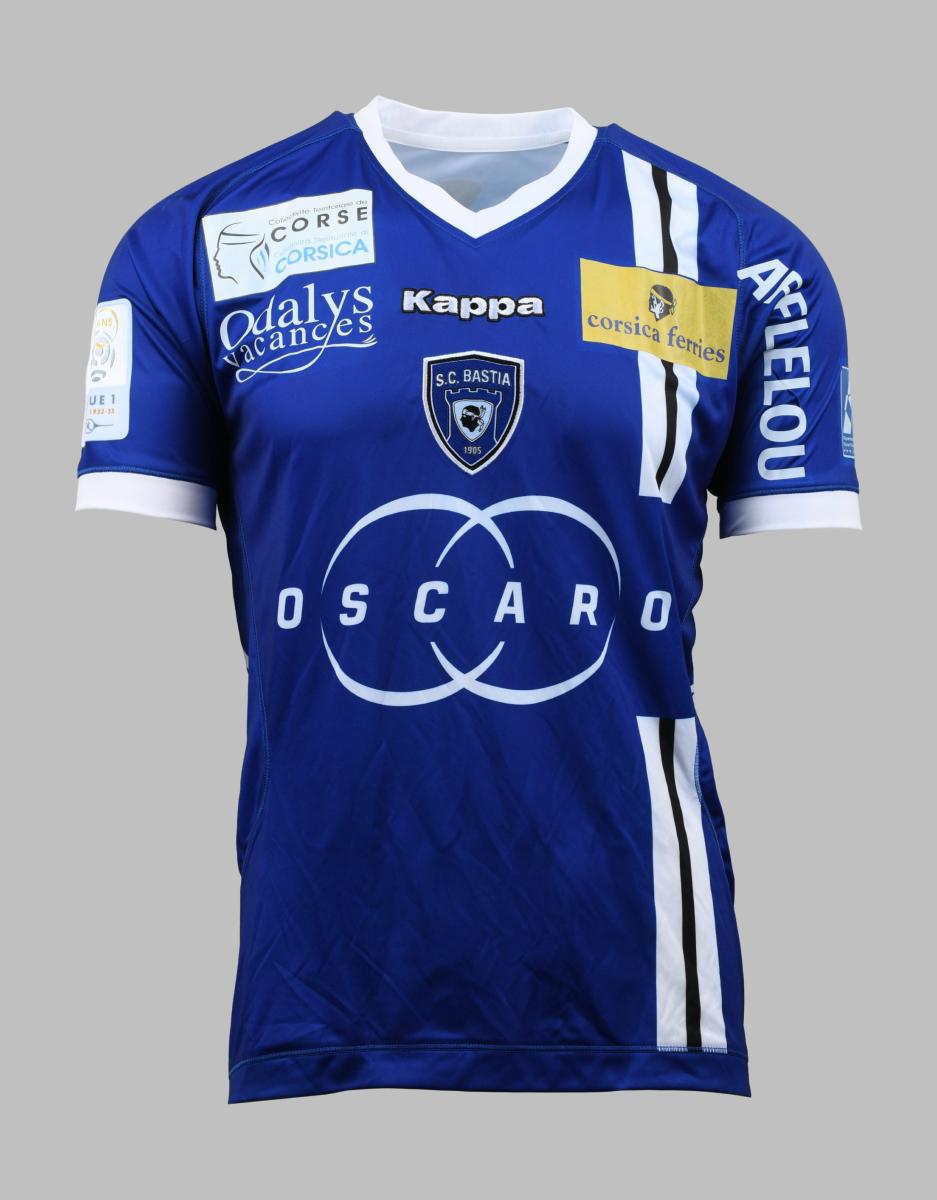 Défenseur. Maillot N°21 du Sporting Club de Bastia porté lors de la saison 2012-2013 du Championnat de France de Ligue 1. Le joueur participe à 33 rencontres. Match à déterminer. Marque Kappa. Modèle Gara. Fabriqué en Chine. Taille M. Maillot porté (match worn shirt).