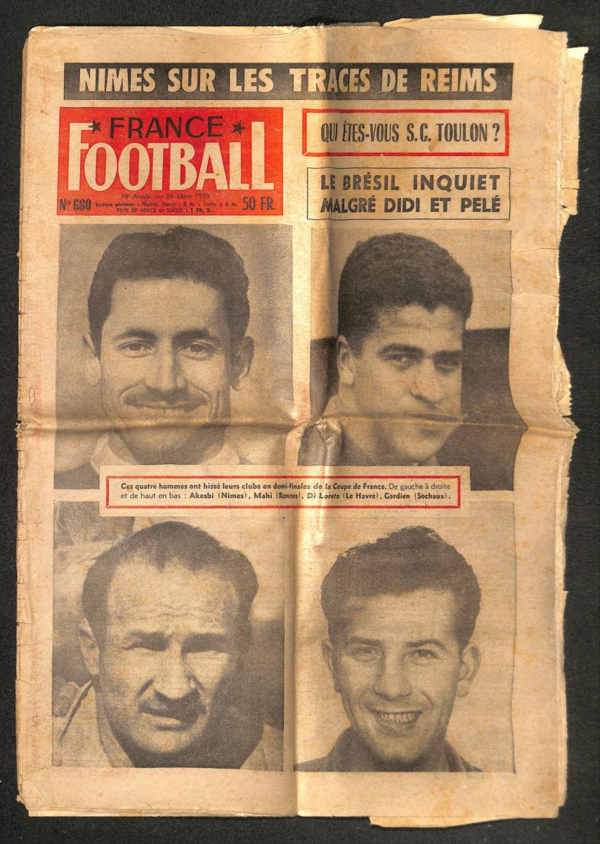 FRANCE FOOTBALL N°680 LE 24 MARS 1959. État d'usage (traces d'humidité, déchirures ou manques peuvent être présents, journal plié en quatre).