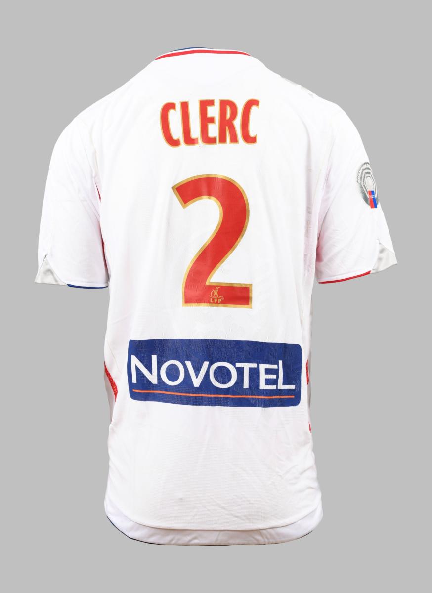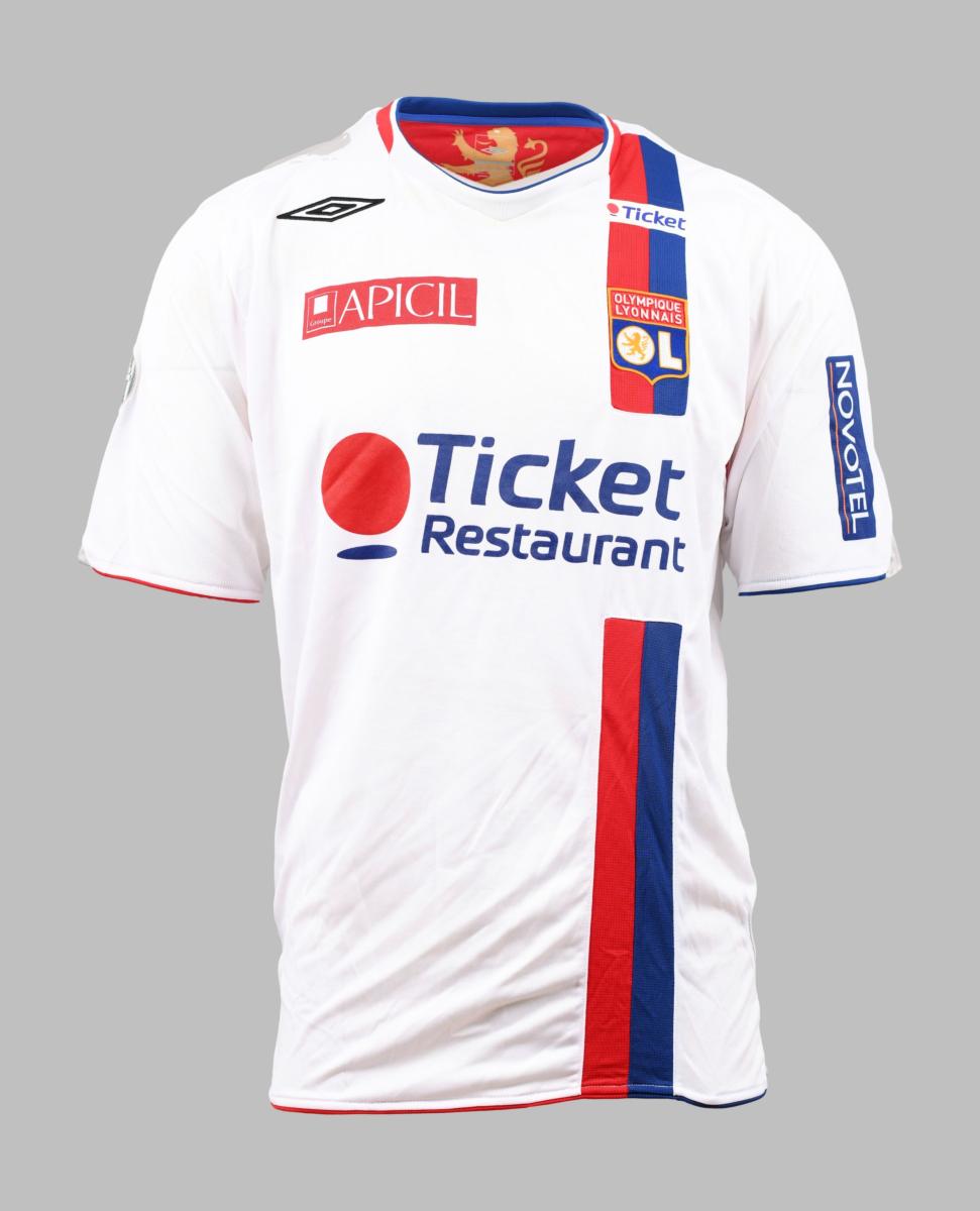 Défenseur. Maillot N°2 de l’Olympique Lyonnais porté lors de la saison 2007-2008 du Championnat de France de Ligue 1. Le joueur participe à 27 rencontres. Match à déterminer. Marque Umbro. Fabriqué en Chine. Taille XL. Maillot porté et non lavé avec traces de match (match worn shirt, unwashed).