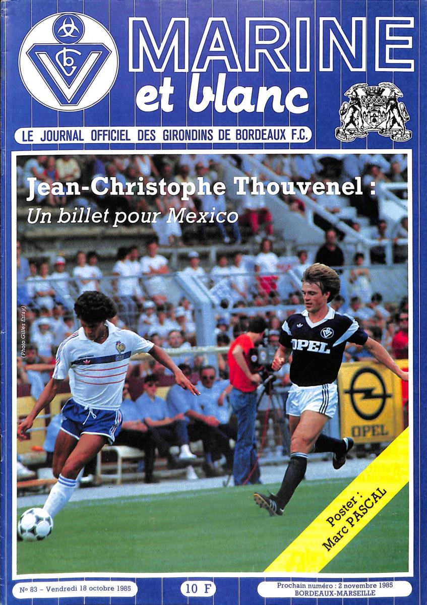 Journal officiel des Girondins de Bordeaux F.C. N°83 du 18 octobre 1985