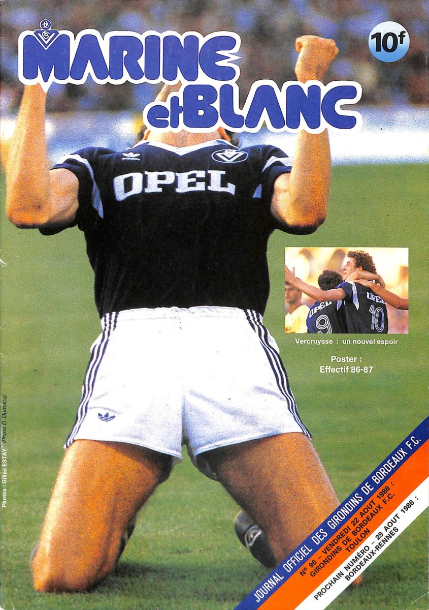 Journal officiel des Girondins de Bordeaux F.C. N°96 du 22 août 1986