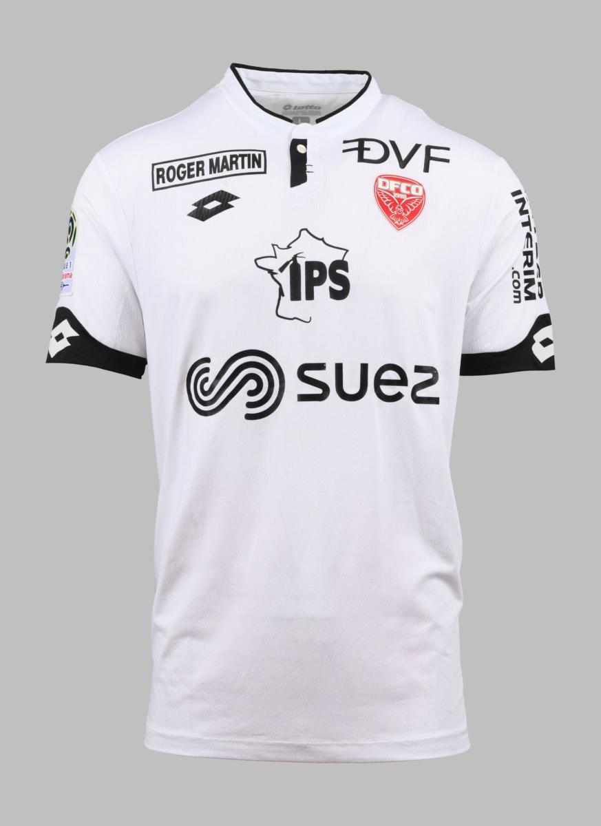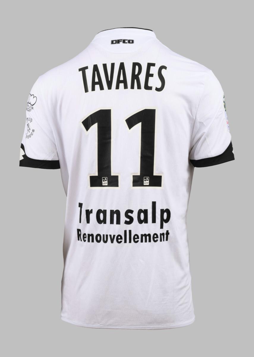 Attaquant. Maillot N°11 du Dijon Football Côte d'Or préparé pour la saison 2017-2018 du Championnat de France de Ligue 1. Le joueur participe à 26 rencontres. Match à déterminer. Marque Lotto. Fabriqué en Roumanie. Taille L. Maillot préparé (match issued shirt).