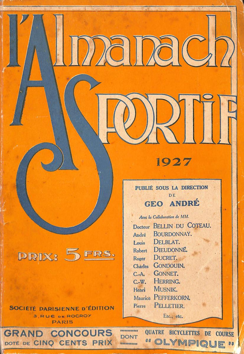 L'ALMANACH SPORTIF (L'AS) 1927 PAR GEORGES « GÉO » ANDRÉ. Format 18,5x27 cm. État d'usage (tranche scotchée).