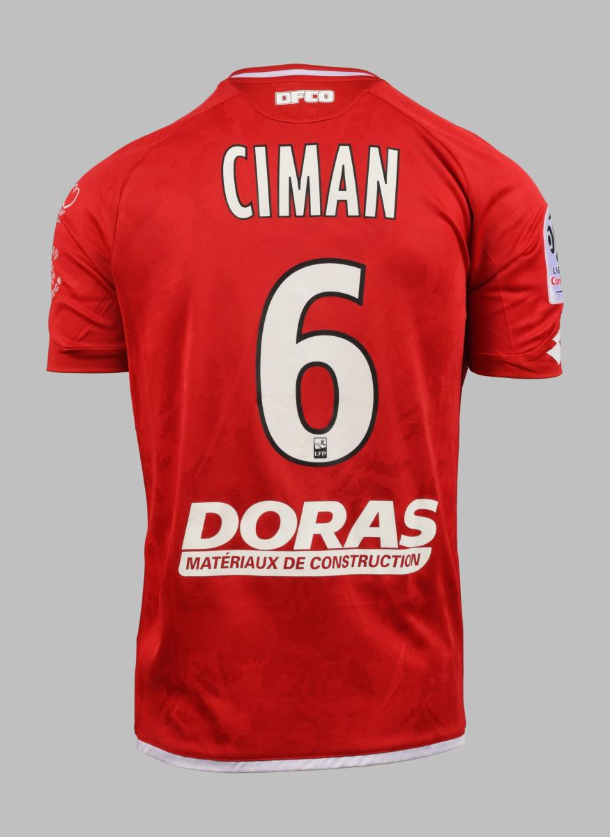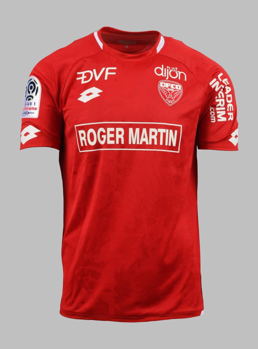 Défenseur. Maillot N°6 du Dijon Football Côte d'Or préparé pour la saison 2018-2019 du Championnat de France de Ligue 1. Le joueur participe à 9 rencontres. Match à déterminer. Marque Lotto. Fabriqué en Albanie. Taille M. Maillot préparé (match issued shirt).