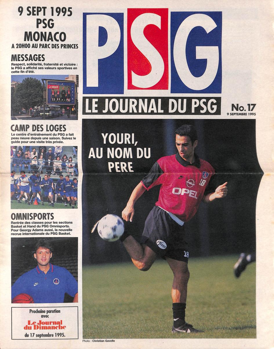 Le journal du PSG N°17 du 9 septembre 1995. Format 31,5x40 cm. Etat d'usage (pliure au centre).