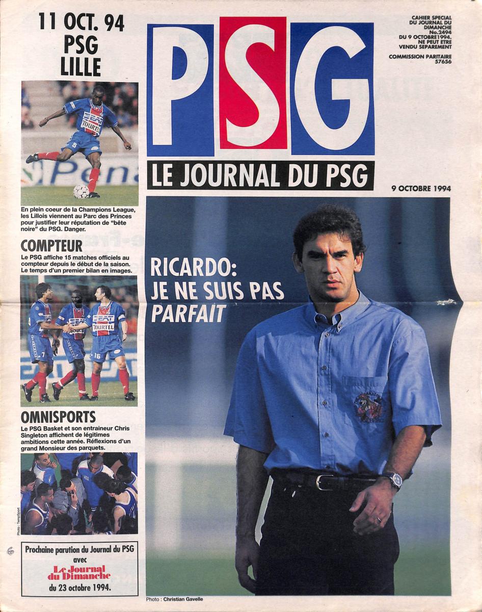 Le journal du PSG N°5 du 9 octobre 1994. Format 31,5x40 cm. Etat d'usage (pliure au centre).