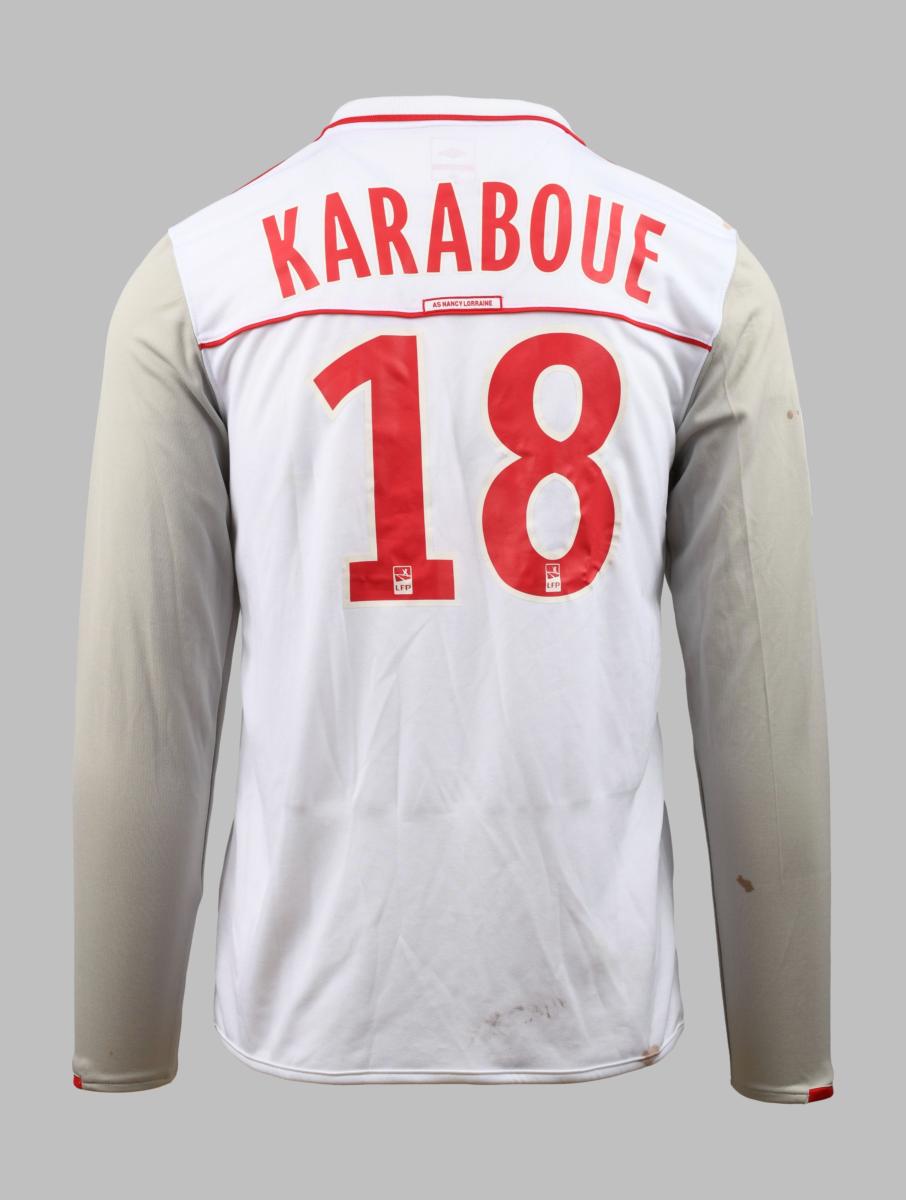 Milieu. Maillot N°18 de l’AS Nancy Lorraine porté lors de la saison 2011-2012 du Championnat de France de Ligue 1. Le joueur participe à 37 rencontres. Match à déterminer. Marque Umbro. Taille S. Maillot porté et non lavé avec traces de match (match worn shirt, unwashed).