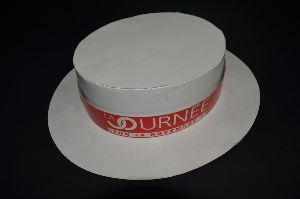 Lot de 2 chapeaux en carton dédicacé par Perrine Pelen et un autre sportif à identifier des JEUX OLYMPIQUES ALBERTVILLE 1992 OLYMPICS GAMES. Bon état.
