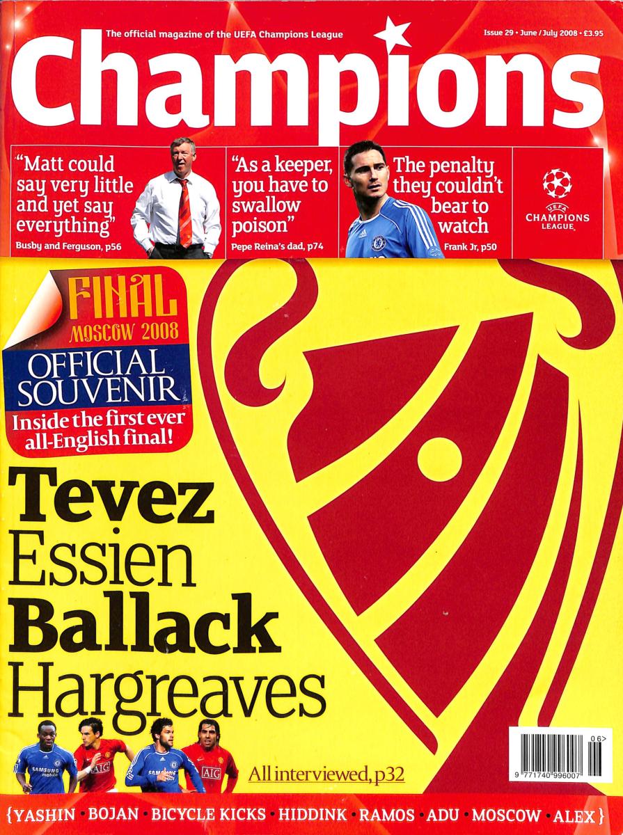 MAGAZINE OFFICIEL DE L'UEFA CHAMPIONS LEAGUE « CHAMPIONS » DE JUIN / JUILLET 2008 (FINAL MOSCOU 2008 OFFICIAL SOUVENIR). Bon état.
