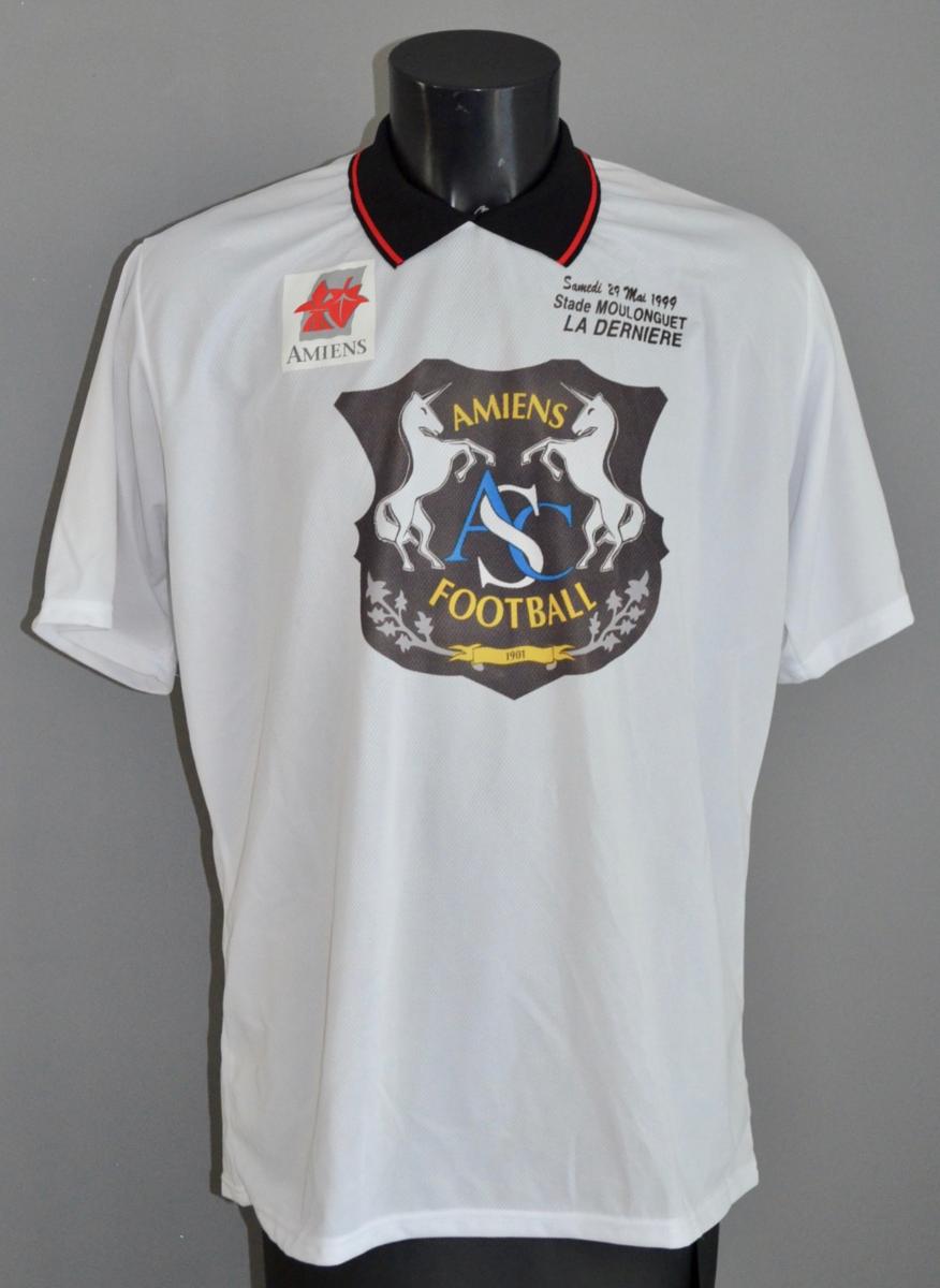 Maillot commémoratif sans numéro du Amiens SC préparé pour le dernier match au Stade Moulonguet le samedi 29 mai 1999. Taille XXL. Maillot préparé (match issued shirt).