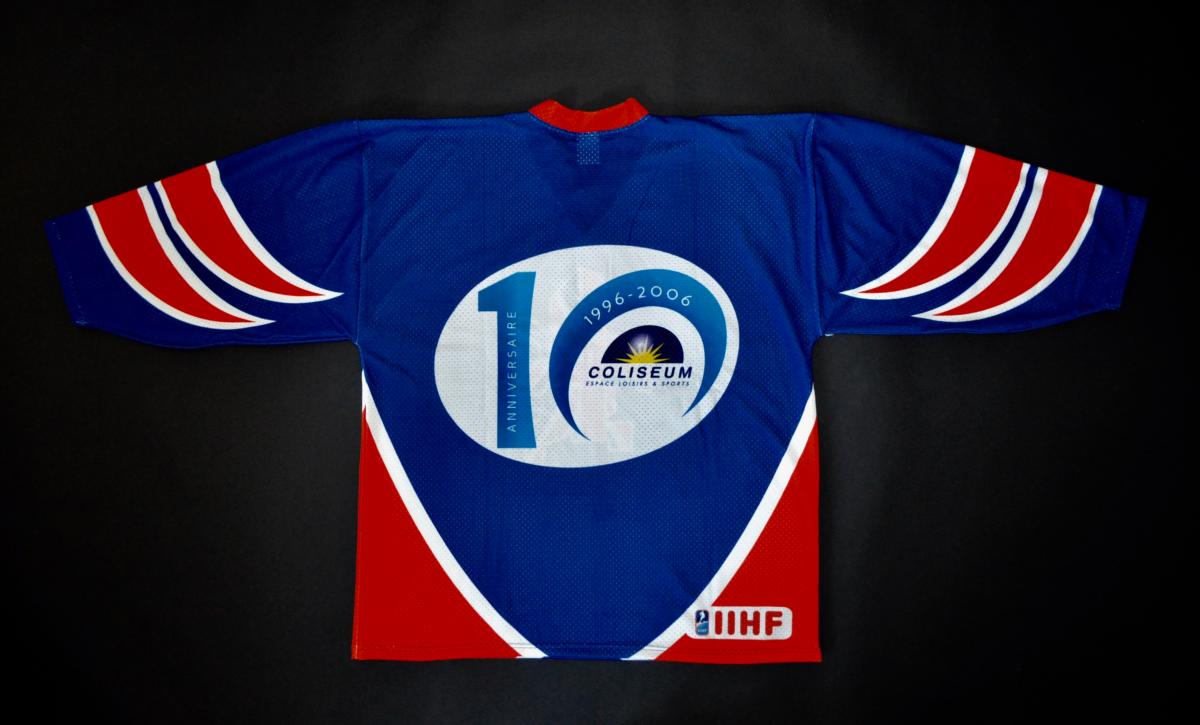 MAILLOT DE HOCKEY SUR GLACE DE L'ÉQUIPE D'ANGLETERRE POUR LES 10 ANS DU COLISEUM. TAILLE XXL.