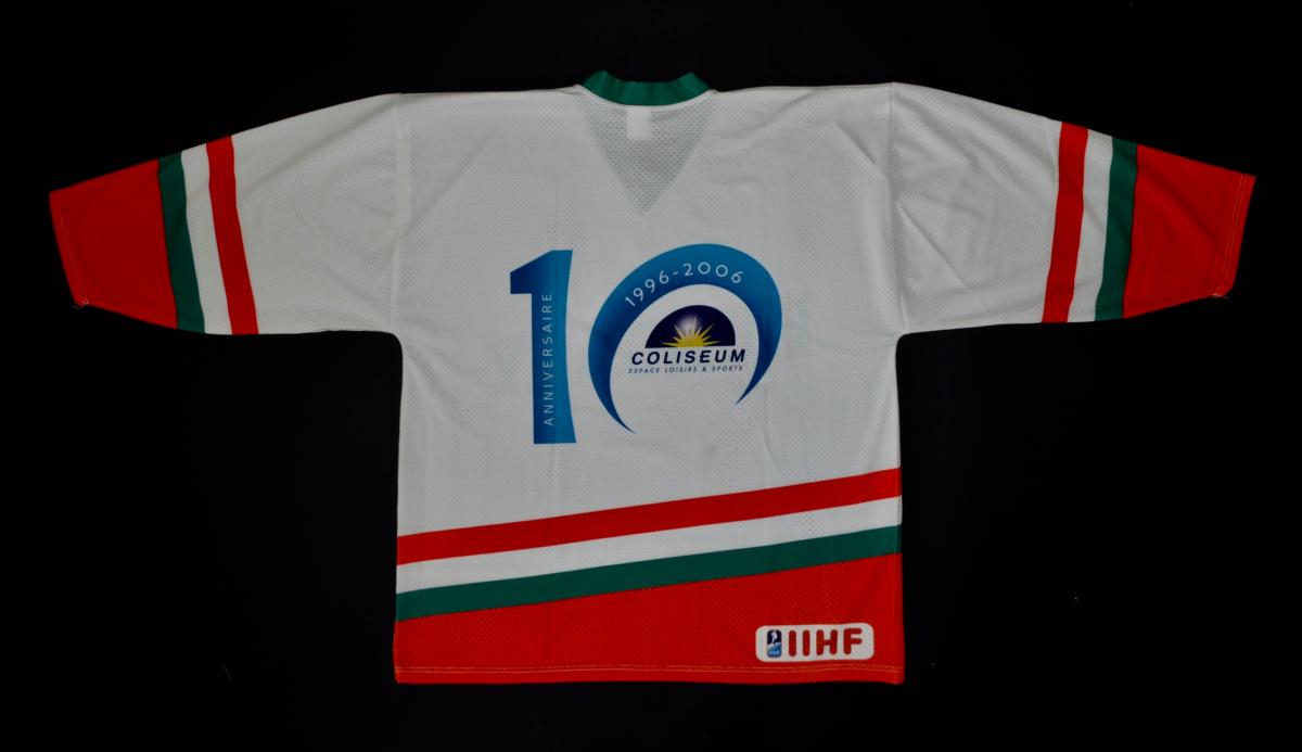 MAILLOT DE HOCKEY SUR GLACE DE L'ÉQUIPE DE HONGRIE POUR LES 10 ANS DU COLISEUM. TAILLE XXL.