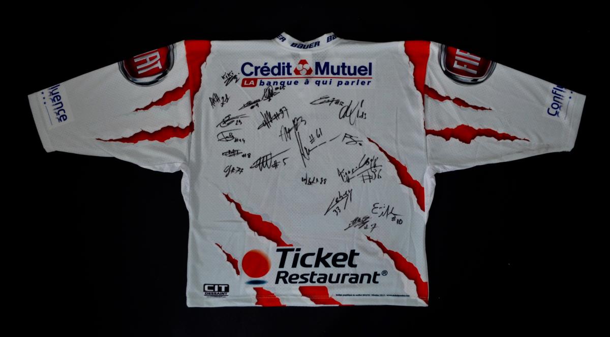 MAILLOT DE HOCKEY SUR GLACE DU LYON HOCKEY CLUB AVEC AUTOGRAPHES DES JOUEURS