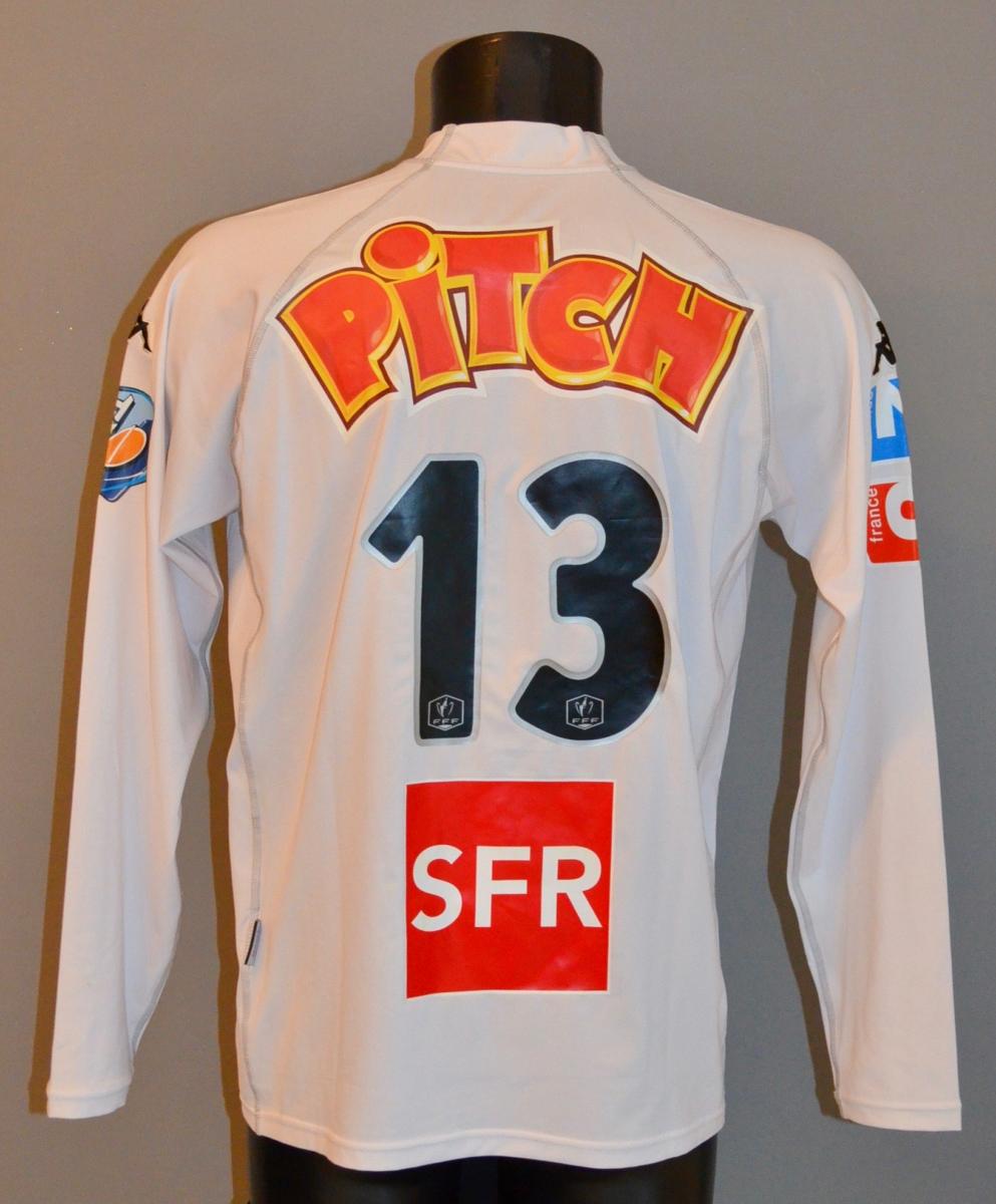 Maillot N°13 du Amiens SC préparé pour la saison 2009-2010 de la Coupe de France. Joueur à identifier et match à déterminer. Marque Kappa. Fabriqué en Chine. Taille non indiquée. Maillot préparé (match issued shirt).