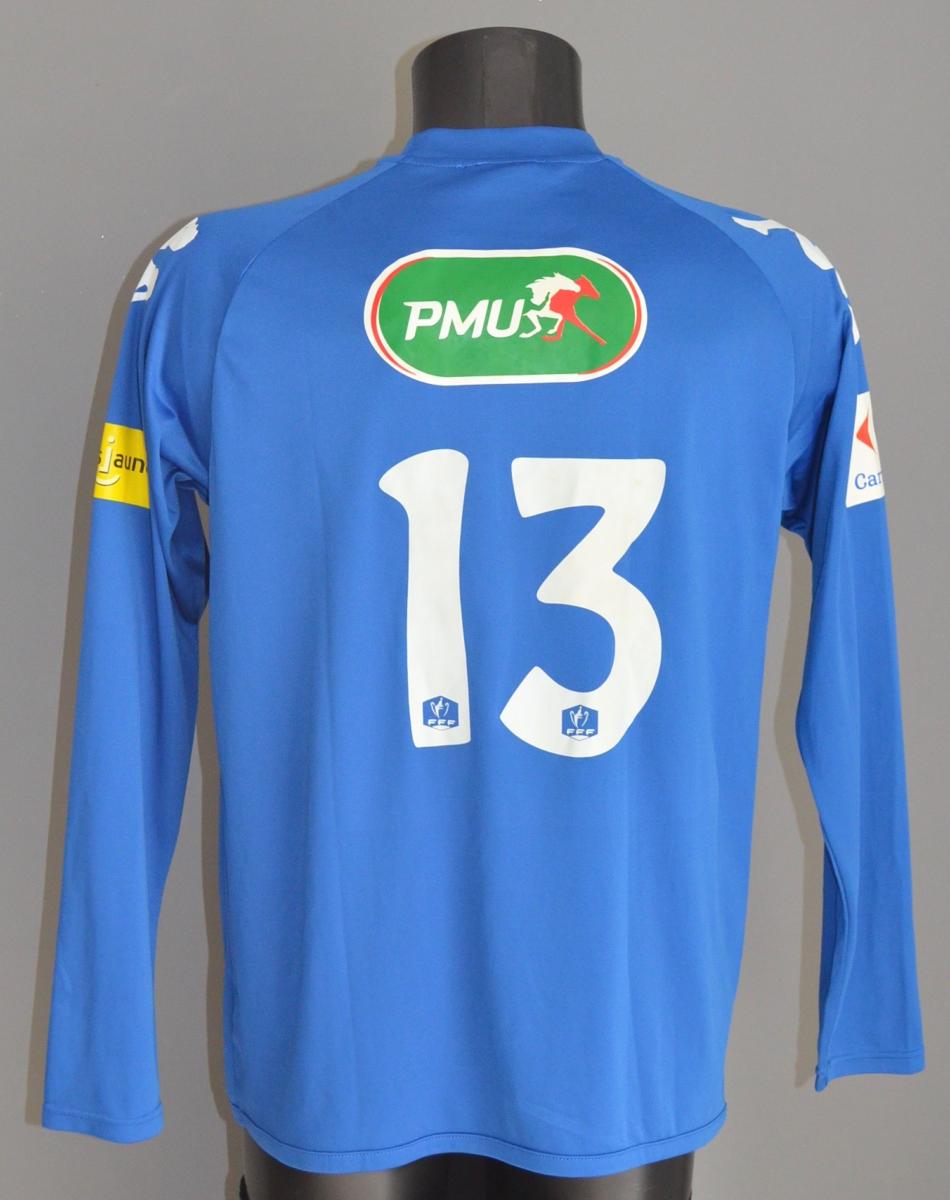 Maillot N°13 du Amiens SC préparé pour la saison 2010-2011 de la Coupe de France. Joueur à identifier et match à déterminer. Marque Kappa. Fabriqué en Chine. Taille XL. Maillot préparé (match issued shirt). État d'usage (tâche sur le logo devant).