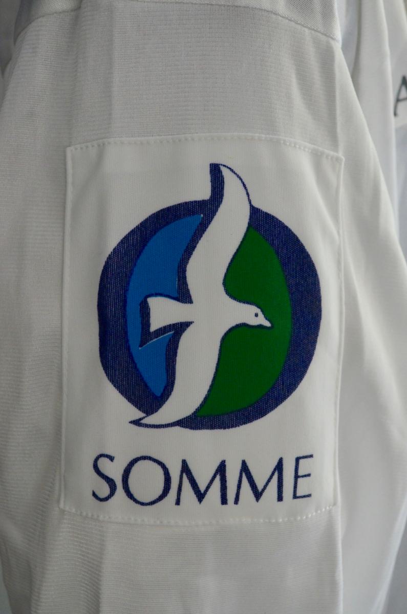 Maillot N°14 du Amiens SC préparé pour la saison 1994-1995 du Championnat de France de Division 2. Joueur à identifier et match à déterminer. Fabriqué en France. Taille non indiquée. Maillot préparé (match issued shirt).