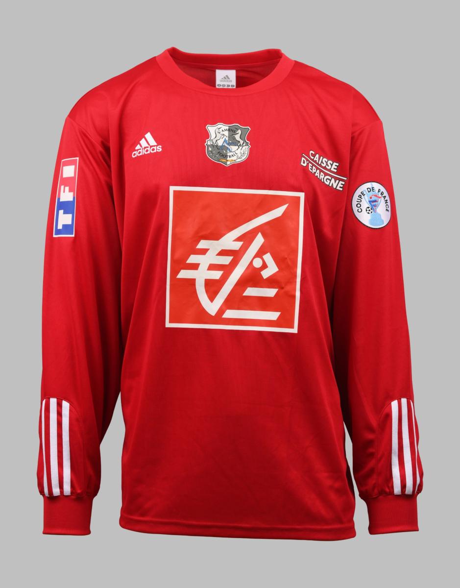 Maillot N°15 du Amiens SC préparé pour le 16ème de Finale de la Coupe de France contre le Stade Brestois le 27 janvier 2006. Victoire 2-0 des Brestois. Joueur à identifier. Marque Adidas. Modèle Climalite. Fabriqué en Thaïlande. Taille XL. Maillot préparé (match issued shirt).