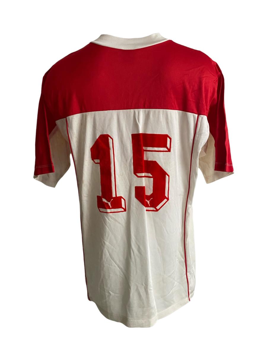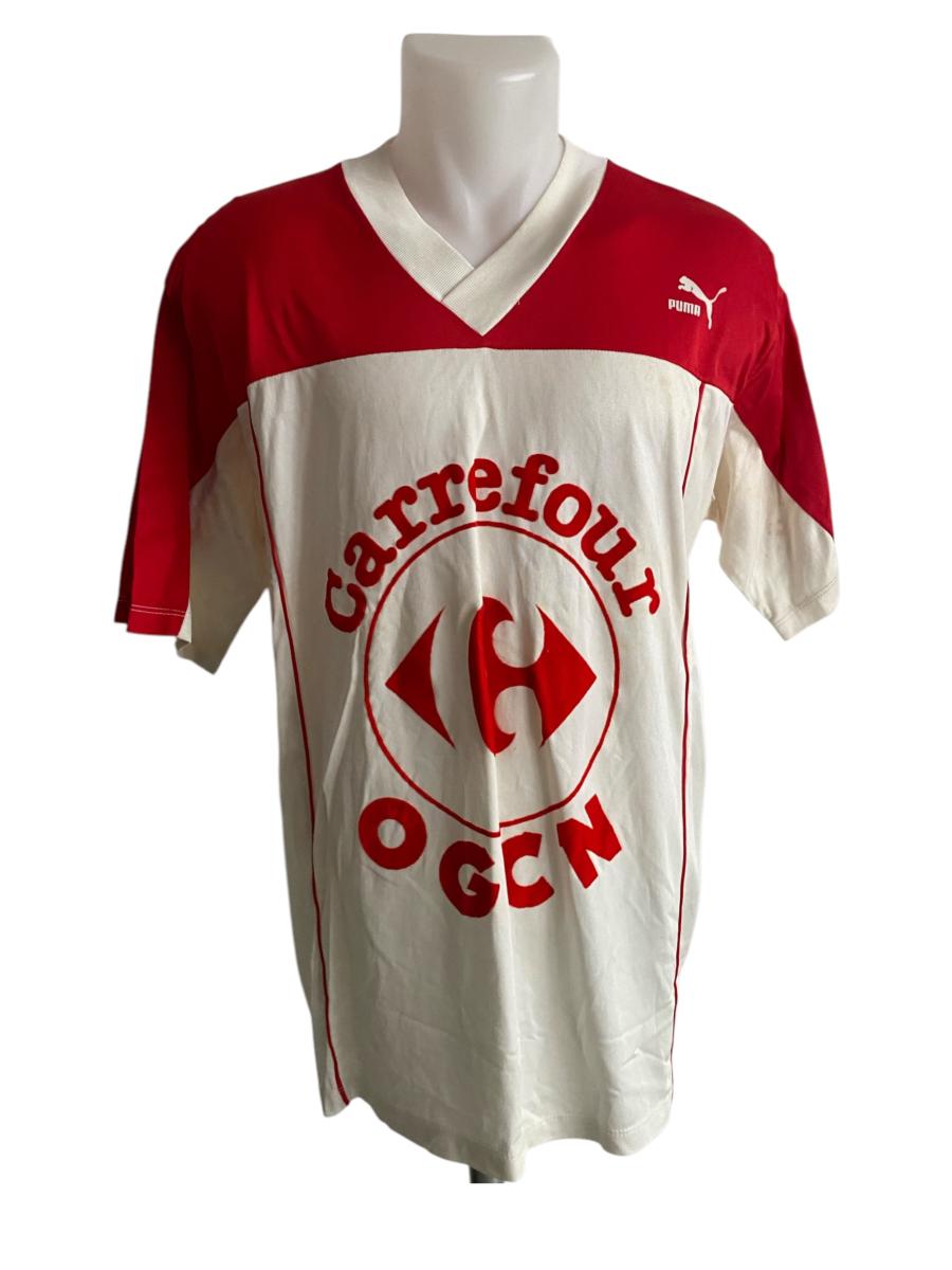 Maillot N°15 de l'OGC Nice porté lors de la période 1983-1985. Joueur à identifier et compétition à déterminer. Marque Puma. Taille 4/5.