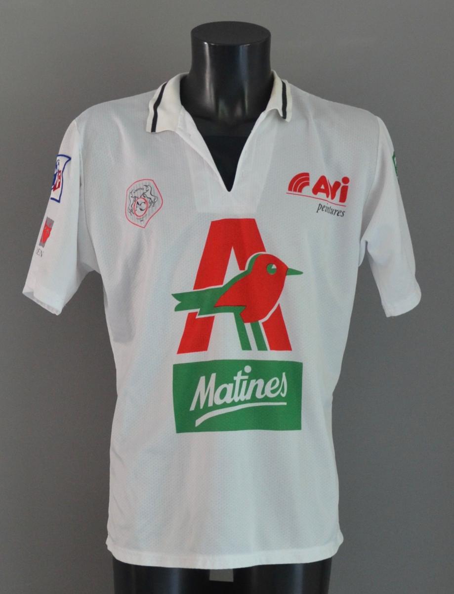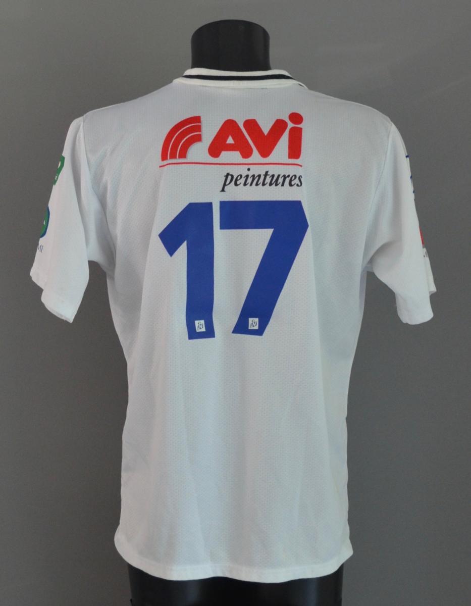 Maillot N°17 du Amiens SC porté lors de la saison 1997-1998 du Championnat de France de Division 2. Joueur à identifier et match à déterminer (manque le cordon de serrage). Taille XL. Maillot porté (match worn shirt). On y joint le short de la saison.