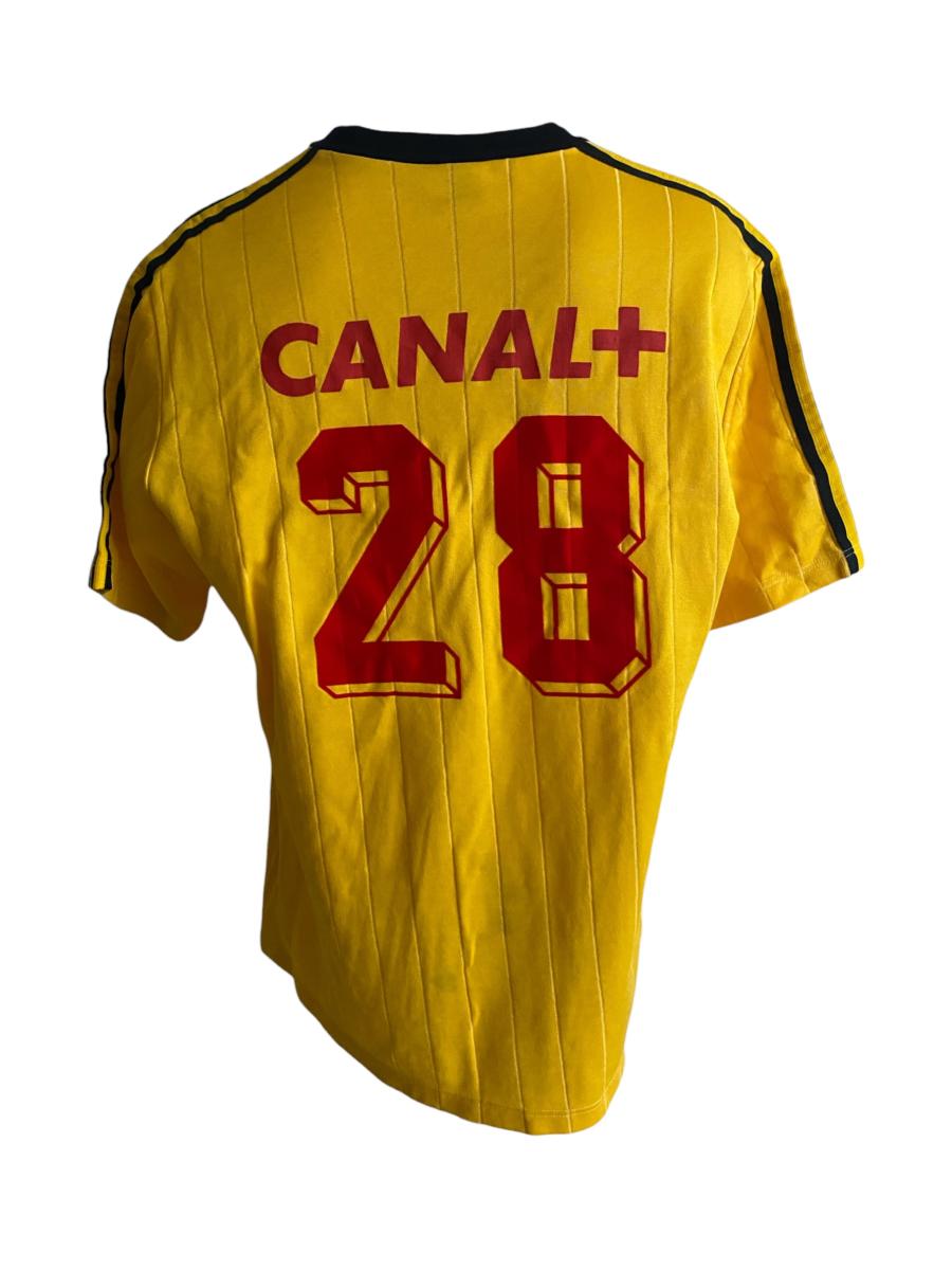 Maillot d'entraînement jaune N°28 de l'AS Monaco pour la saison 1991-1992 du championnat de France de Division 1. Joueur à identifier. Marque Puma. Taille XL.