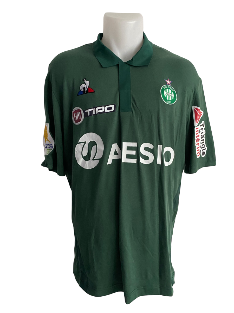 Maillot sans numéro de l'AS Saint-Étienne préparé pour le 16ème de finale de la Coupe de la Ligue face au Nîmes Olympique le 27 novembre 2018. Marque Le Coq Sportif. Taille XL.