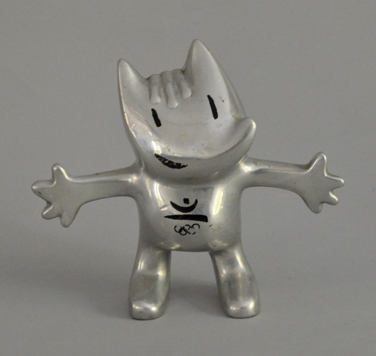 MASCOTTE COBI Argentée des JEUX OLYMPIQUES BARCELONE 1992 OLYMPICS GAMES. Hauteur : 14 cm. État moyen.