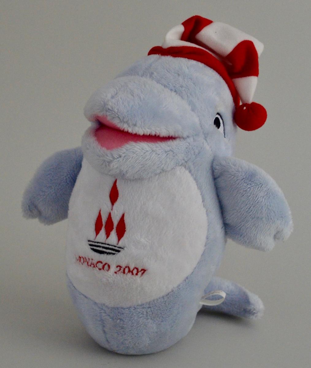 Mascotte officielle des JEUX OLYMPIQUES des petits états d'Europe À MONACO EN 2007 OLYMPICS GAMES. Hauteur : 29 cm.