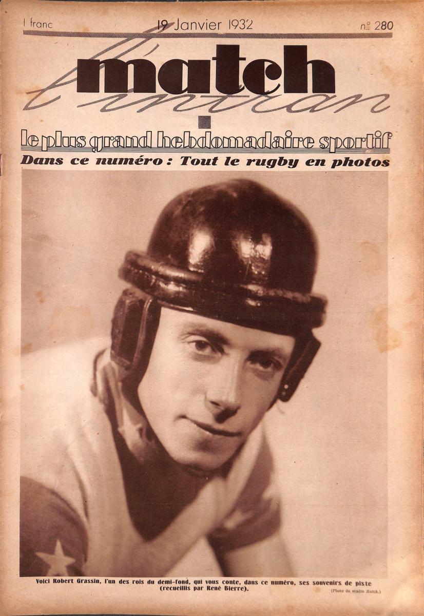 MATCH L'INTRAN N°280 DU 19 JANVIER 1932. Cyclisme : Robert Grassin. État d'usage.