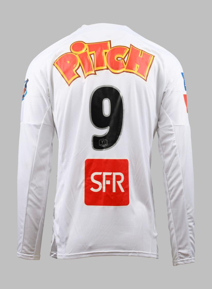 Attaquant. Maillot N°9 du Stade Rennais Football Club préparé pour le 32ème de Finale de la Coupe de France contre Martigues le 6 janvier 2008. Le joueur joue 90 minutes. Victoire des Rennais 3-0. Marque Puma. Fabriqué en Thaïlande. Taille L. Maillot préparé (match issued shirt).