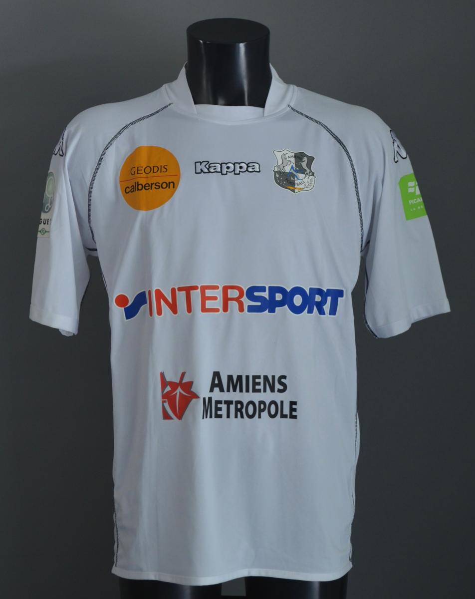 Maillot N°28 du Amiens SC porté lors de la saison 2011-2012 du Championnat de France de Ligue 2. Match à déterminer. Marque Kappa. Fabriqué en Chine. Taille XL. Maillot porté (match worn shirt).