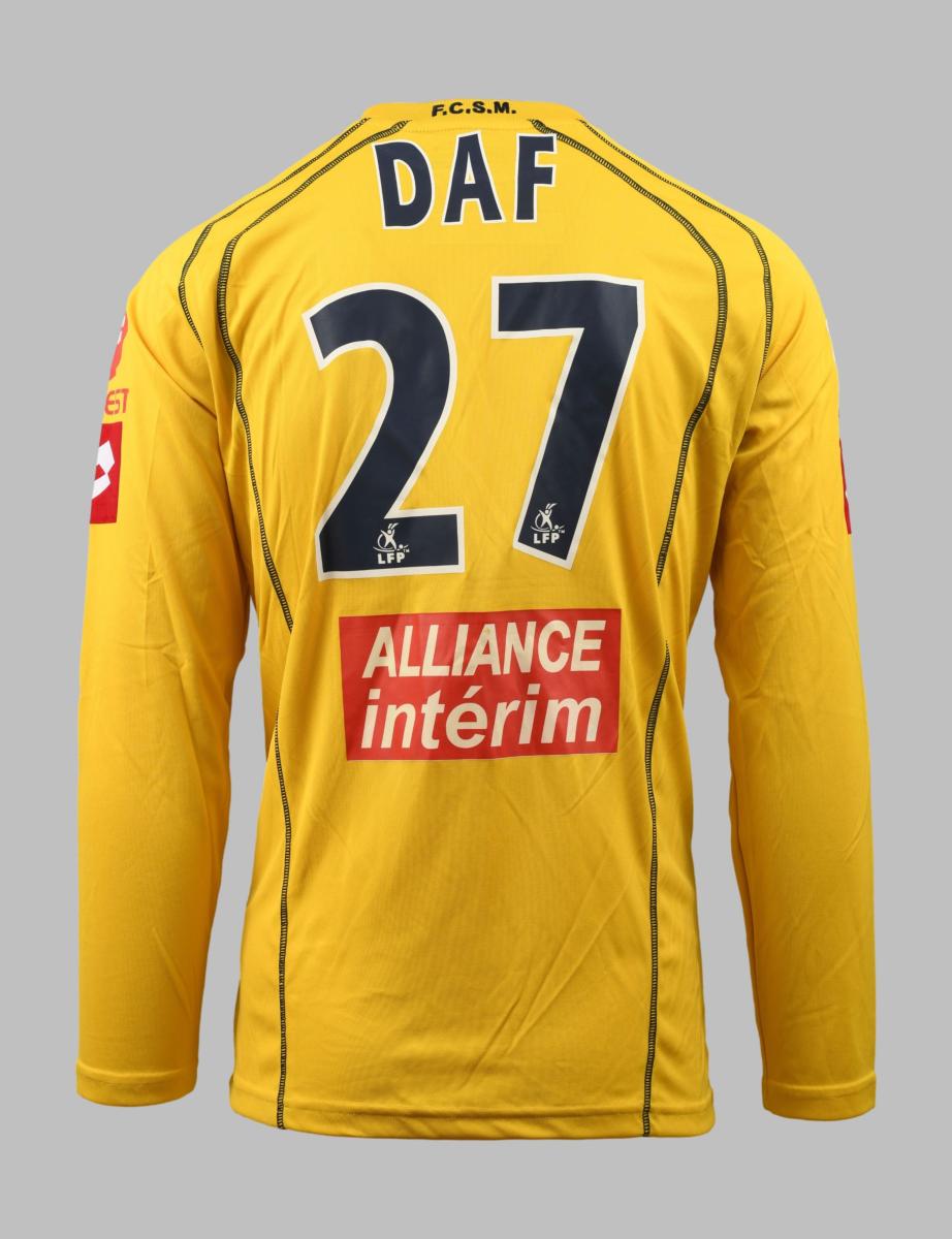 Défenseur. Maillot N°27 du Football Club Sochaux-Montbéliard porté lors de la saison 2004-2005 du Championnat de France de Ligue 1. Le joueur participe à 18 rencontres. Match à déterminer. Marque Lotto. Fabriqué en Italie. Taille L. Maillot porté (match worn shirt).